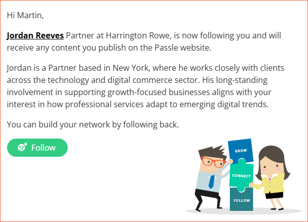 If someone follows you, you can opt to receive an email letting you know who has followed you, along with a brief overview about them and a simple option to follow back.