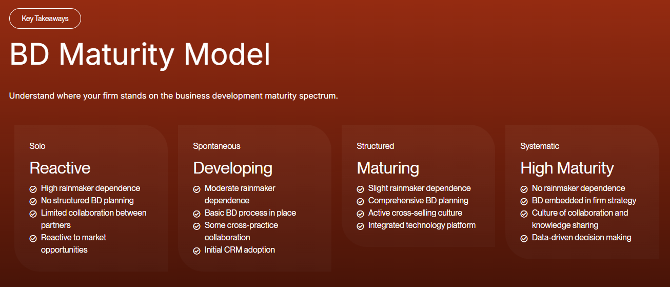 This matters because growth does not require more lawyers. It requires better use of the lawyers already in the firm. The data show that firms with stronger visibility and more disciplined coordination outperform those that rely on informal networks and individual effort.